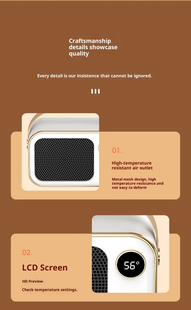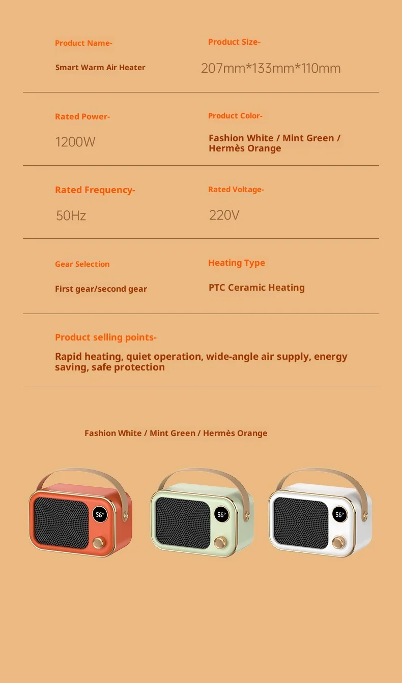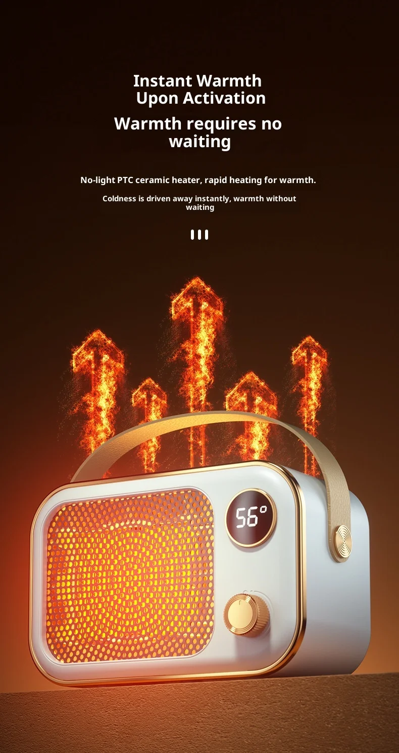 Affronta il freddo in modo intelligente con il nuovo Mini Riscaldatore Elettrico PTC, progettato per riscaldare velocemente piccoli ambienti come ufficio, camera da letto, soggiorno o postazione desktop.